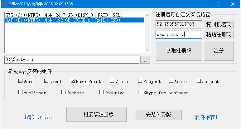 Office 2019 x64 安装助手20260209_自定义安装路径_带清理